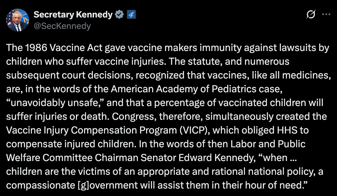 HHS Secretary Robert F. Kennedy Jr. just took aim at a system that has failed Americans for nearly 40 years, the Vaccine Injury Compensation Program (VICP).