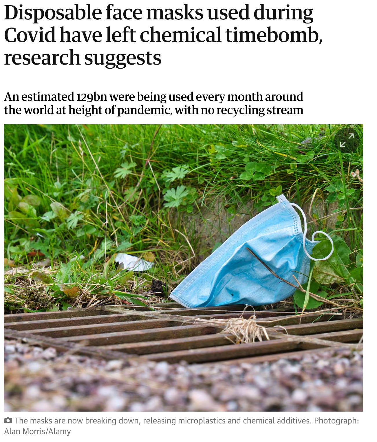 "The surge in the use of disposable face masks during the Covid pandemic has left a chemical timebomb that could harm humans, animals and the environment, research suggests.