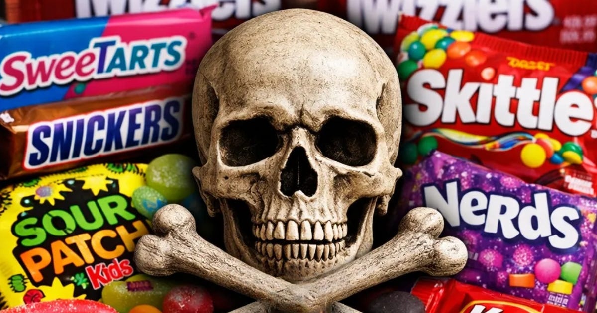 Among the candies identified were many household names that routinely appear in lunchboxes, movie theaters, holiday bags, and Valentine’s Day treats: SweeTarts, Nerds, Sour Patch Kids, Skittles, Twizzlers, Jolly Ranchers, Trolli, Tootsie Roll, Snickers, and Kit Kat. These products are not occasional treats; they are designed, packaged, and marketed for frequent consumption.