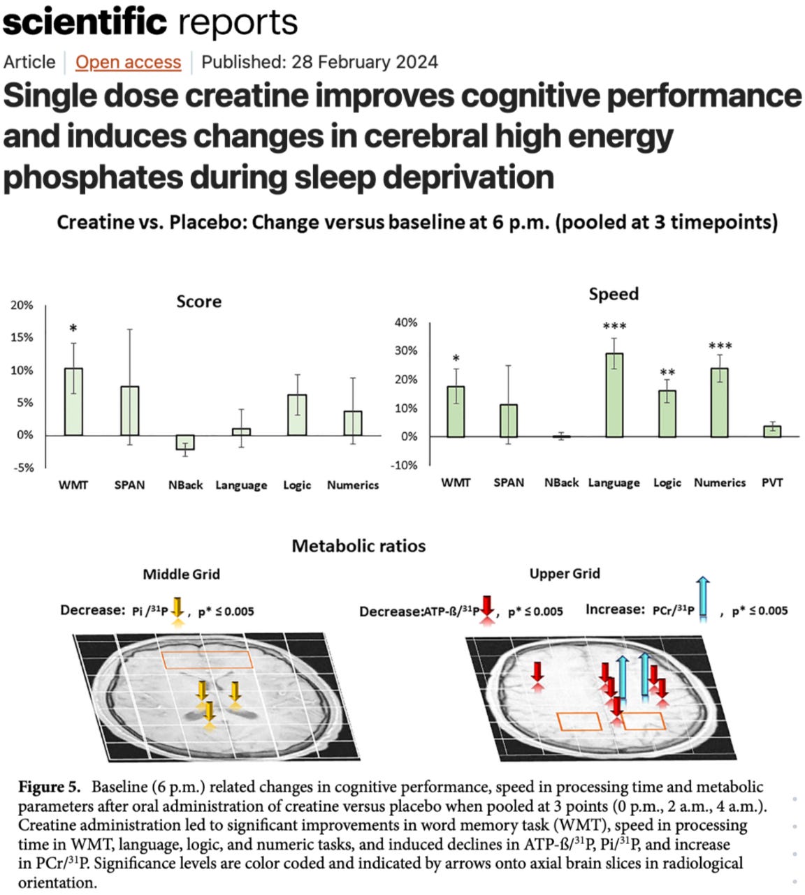 In conclusion, a single ~20g dose of creatine rapidly enhanced brain bioenergetics and significantly improved cognitive performance during sleep deprivation, with effects sustained for up to nine hours.