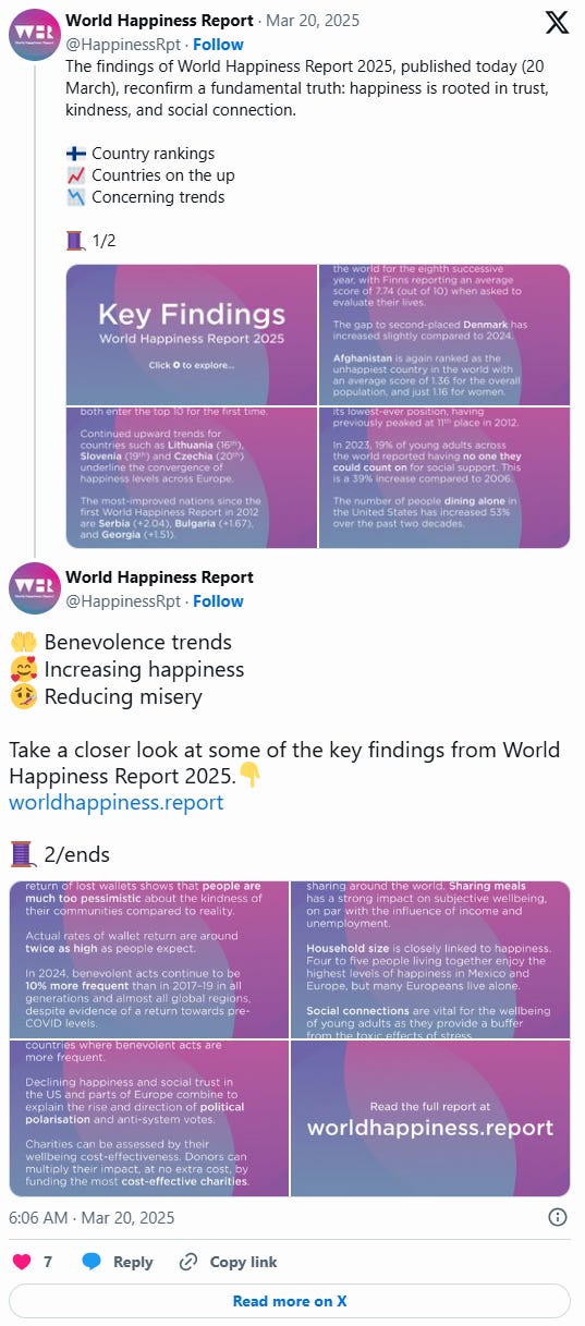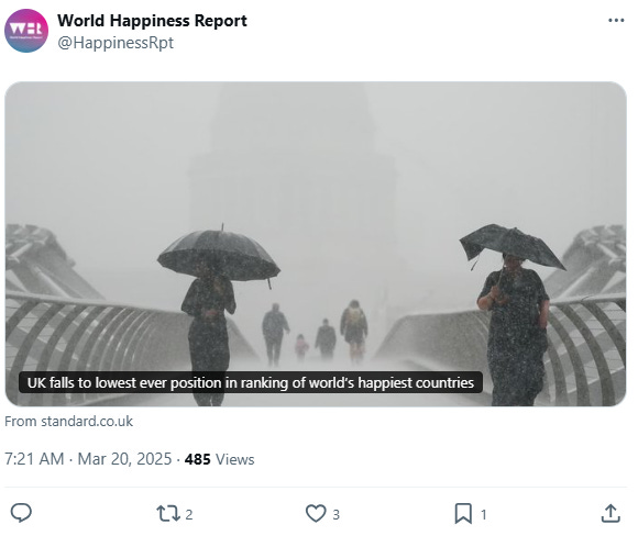 That’s according to the 2025 “World Happiness Report,” by the University of Oxford in partnership with Gallup and the United Nations.