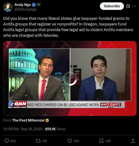 Andy Ngo and many other investigators into Antifa activities note that the group enjoys a number of protections, including legal protections and funding for operations. Financial aid comes from crowdfunding pages, but also from NGOs and even government agencies feeding cash into adjacent activism groups.