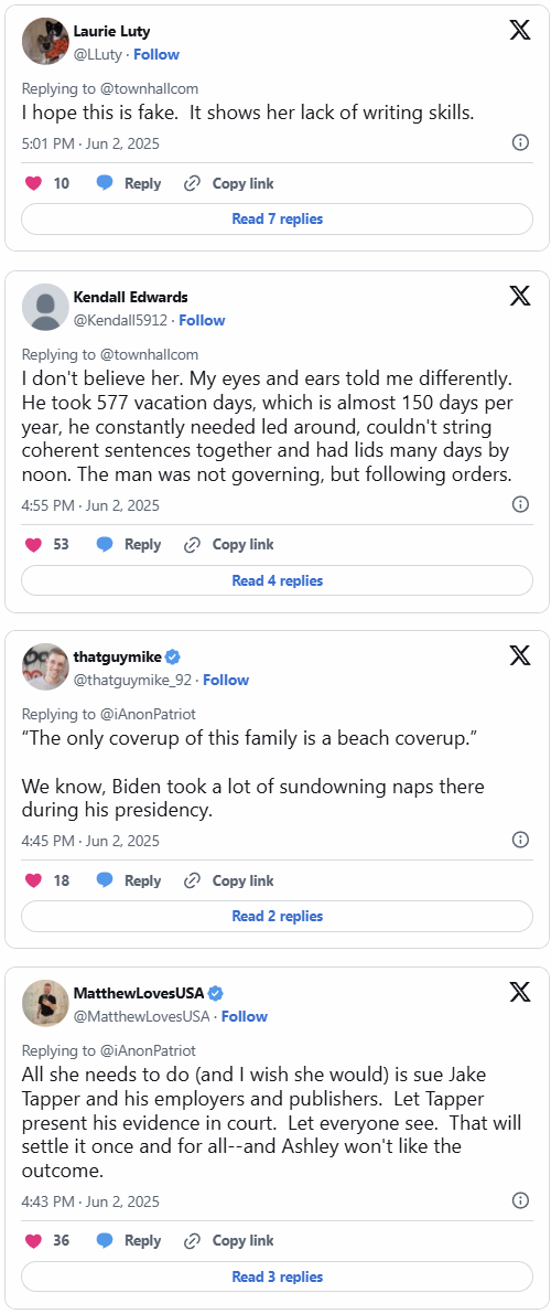 Needless to say, no one believed a word that Ashley Biden had to say. Many also brought up her sordid history of showering with her father, while others mocked her writing skills.