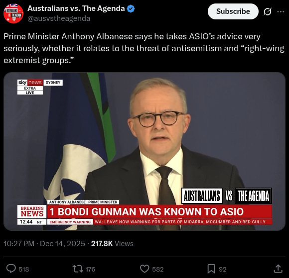 JOURNALIST: Prime Minister, Mike Burgess warned you in February that antisemitism was the number one threat to life. Is that still the case and have you taken these threats seriously enough? And Acting Deputy Commissioner, if I may, it’s my understanding that Sajid Akram moved to Australia in the late 90s, I believe from Pakistan. Is that correct?