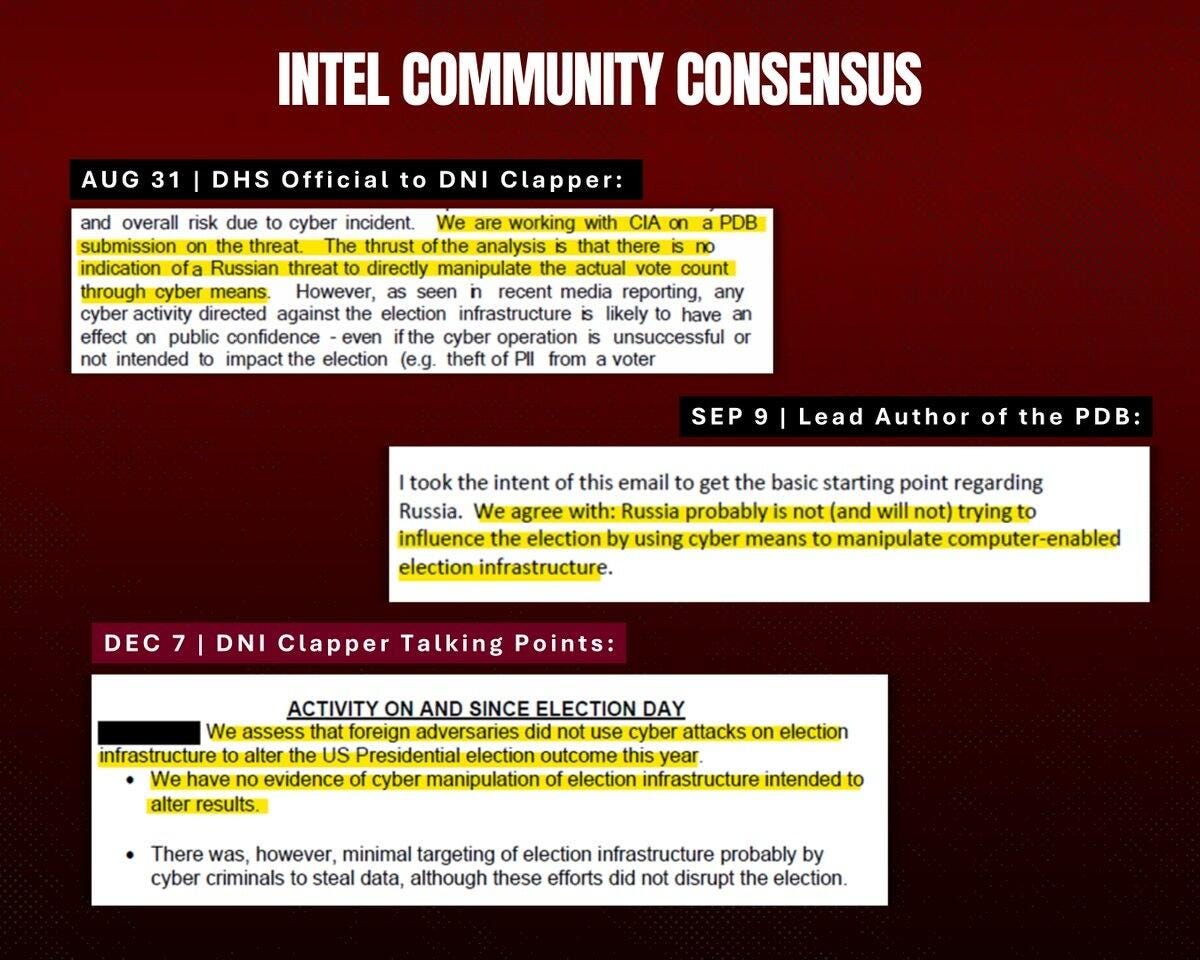 For months preceding the 2016 election, the Intelligence Community shared a consensus view: Russia lacked the intent and capability to hack U.S. elections.