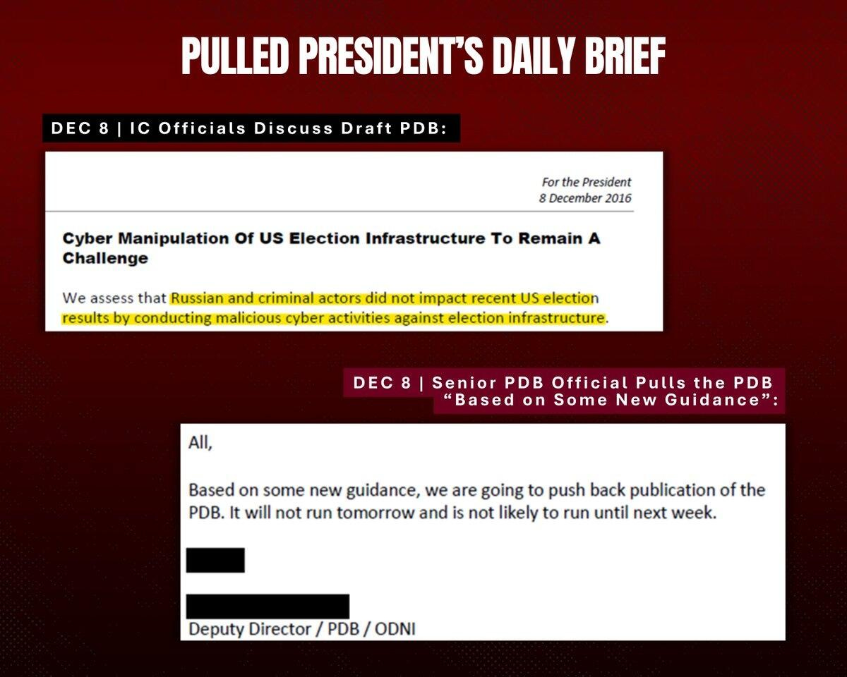 On Dec 8, 2016, IC officials prepared an assessment for the President's Daily Brief, finding that Russia "did not impact recent U.S. election results" by conducting cyber attacks on infrastructure.