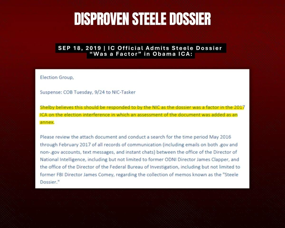 According to whistleblower emails shared with us today, we know Clapper and Brennan used the baseless discredited Steele Dossier as a source to push this false narrative in the intelligence assessment.