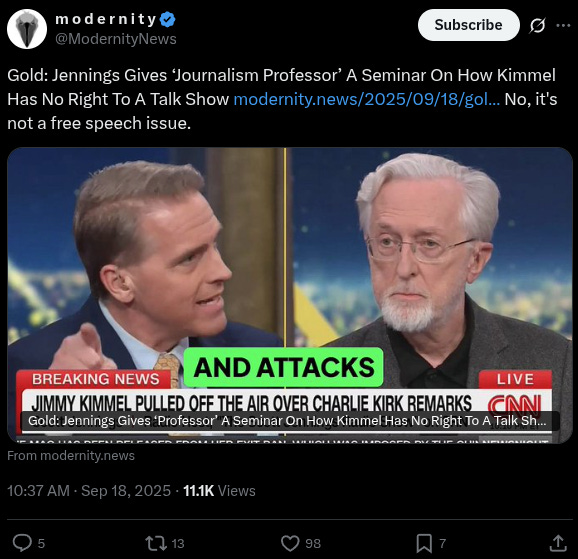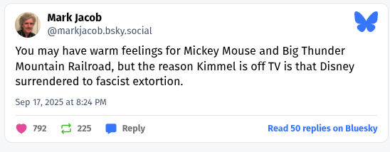 ABC/Disney didn’t capitulate to anyone, they literally made the decision to fire Kimmel themselves.