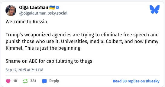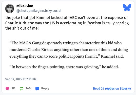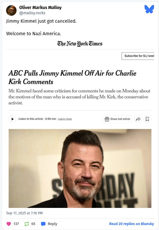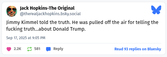 BlueSky Lunatics Declare America a “Fascist Dictatorship” Because Jimmy Kimmel Got Fired