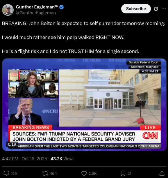 Bolton Lashes Out at Trump After Grand Jury Returns Damning 18-Count Indictment