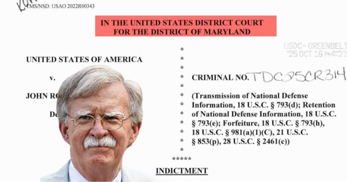 Trump’s former National Security Advisor John Bolton was indicted by a grand jury in Maryland on Thursday.