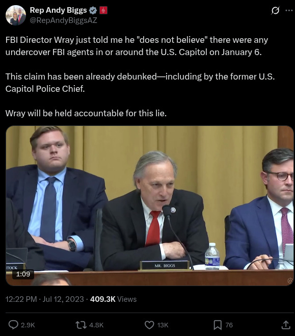 Despite the pre-existing report, Wray rejected that notion in testimony before Congress. “The idea that I’m biased against conservatives seems somewhat insane to me, given my own personal background,” Wray told Congress in 2023.