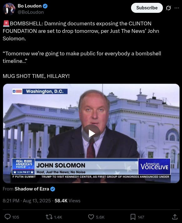 Now, according to John Solomon, the investigation, quietly running in New York, Washington, D.C., and Little Rock, was reportedly a fully predicated criminal case examining whether Hillary Clinton, as Secretary of State, ran a pay-to-play influence racket.