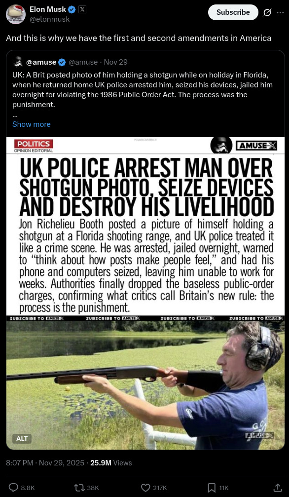 The case has drawn attention from Elon Musk, who said it was further evidence of why America needs the Second Amendment.