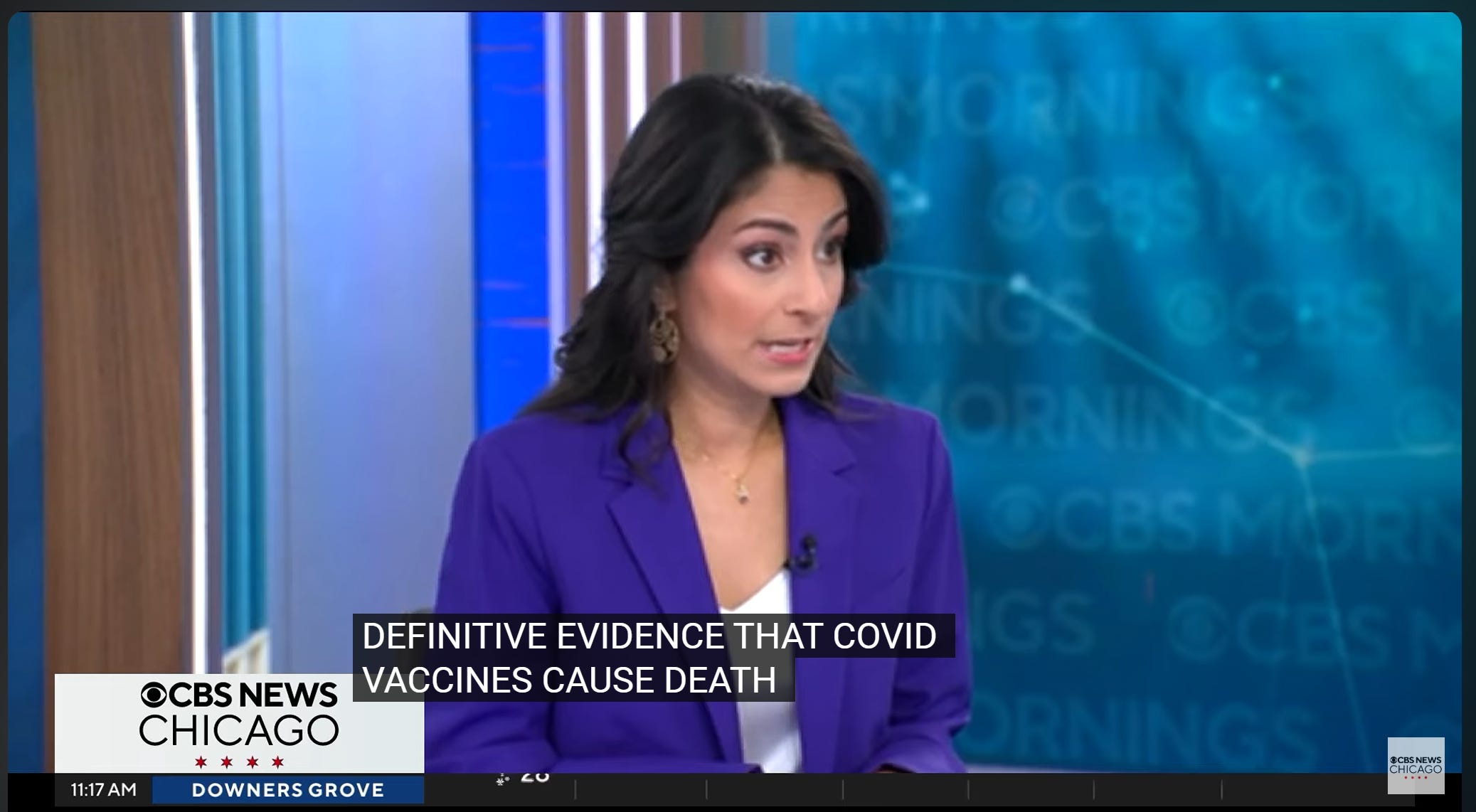 In the same breath, I heard CBS medical correspondent Dr Celine Grounder say “there is no definitive evidence that COVID-19 vaccines cause death but what we do know is that 2000 American children died from SARS-CoV-2 infection and that’s what we need to guard against.”