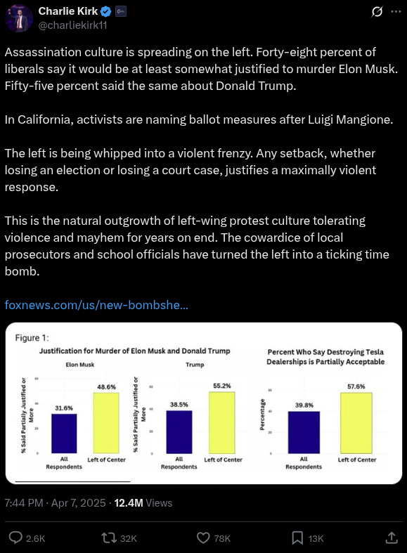 He also noted that “We are getting death threats every single day here on ‘The Charlie Kirk Show.’”