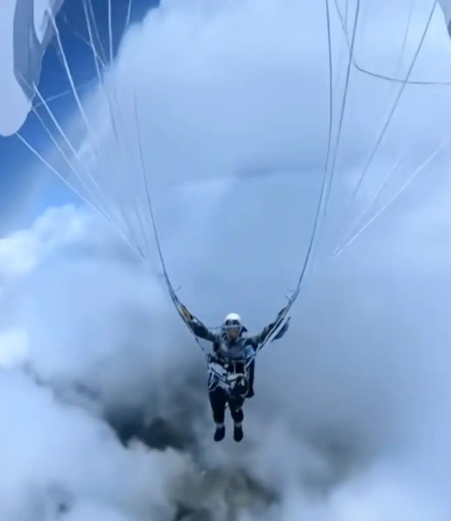 He alleges he lost control of the glider soon after he jumped from a mountain spot roughly 9,850 feet above sea level and was quickly dragged into a sub-zero ‘cloud suction’.”