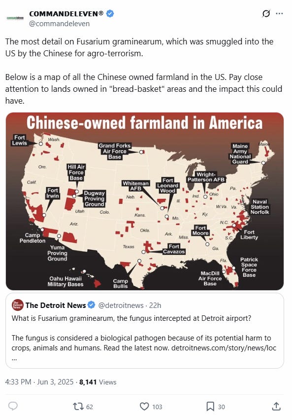 The bigger picture is grim. America's food supply is a soft target, and a well-placed pathogen could collapse the Midwest's grain belt, spike food prices, and sow chaos in an already fragile economy.