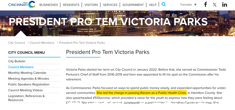 Profiling Parks: Here's what the City of Cincinnati's website comes up ... all you need to know about this social justice warrior: