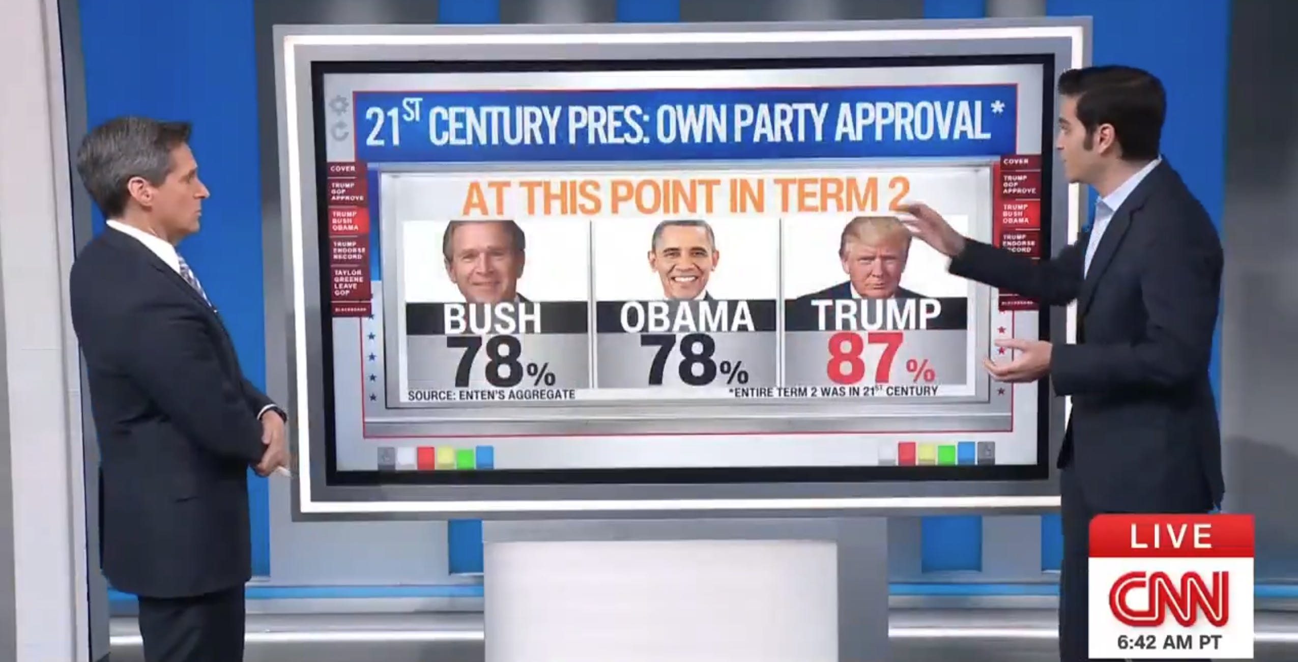 There are no divisions in Trump’s base. In fact, Trump has the strongest continuing support within his base compared to any president in the past 25 years with no deviation or decline in the past 6 months.