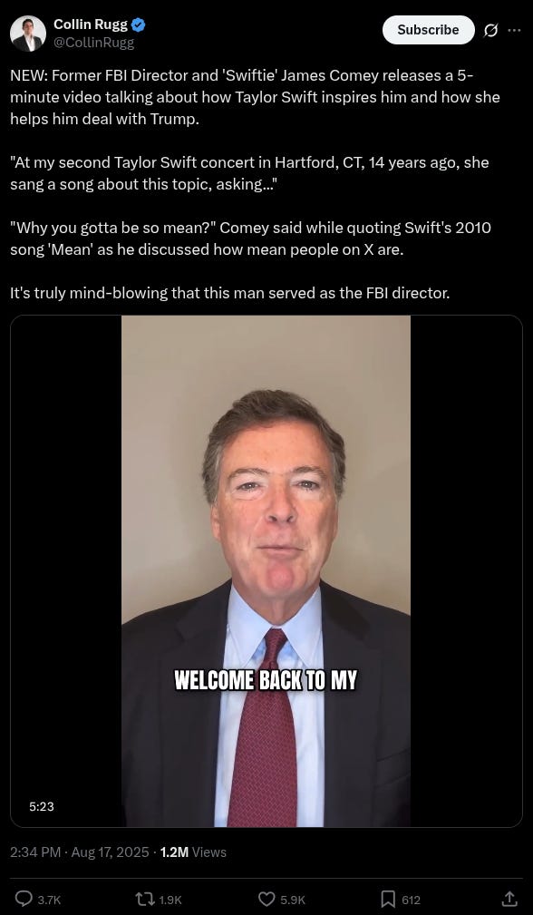 Former FBI Director James Comey once again trashed President Trump in a 5-minute rant posted to his Substack.