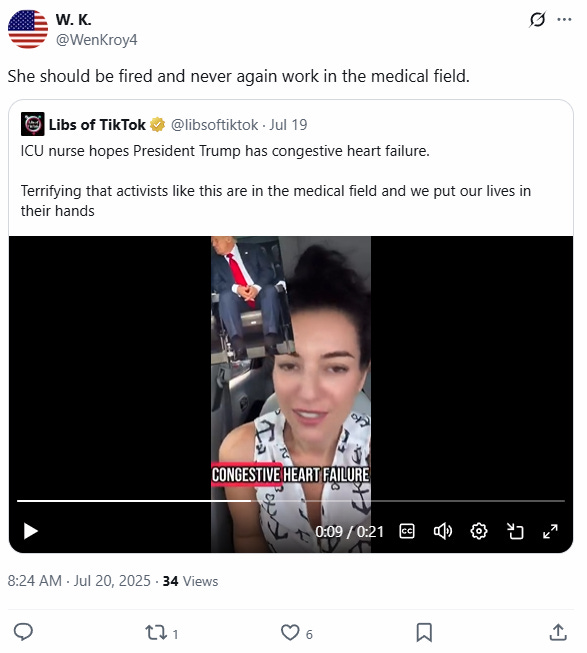 Deranged: ICU Nurse Posts Video Hoping Trump Has Congestive Heart Failure