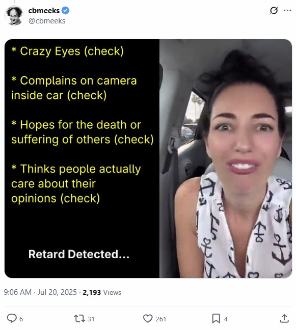 “But make America healthy again or whatever the hell RF tooth rot is saying these days,” she continues, further proclaiming “Sure Trump isn’t in best care. Any minute now,” referring to her wish for the President to drop dead.