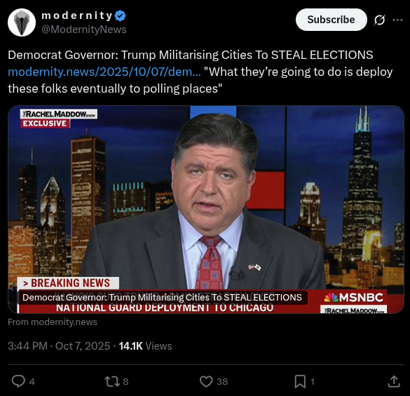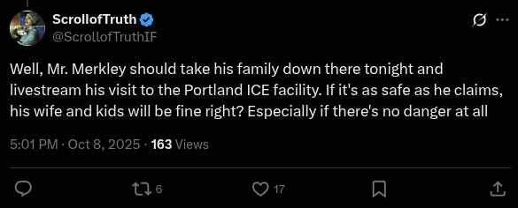 Merkley’s demented remarks come in the wake of Illinois Governor JB Pritzker suggesting that Trump is deploying the National Guard to cities as part of a grand scheme to end elections in the U.S.