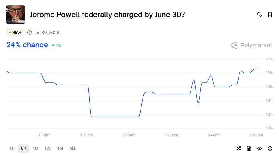 Or maybe not and it’s all for show: according to the latest Polymarket odds, the probability of Powell being federally charged by June 30 - a date that is beyond Powell’s chairman tenure - is only 18%.