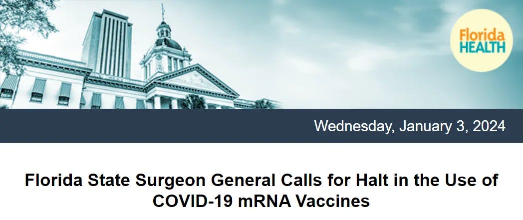 As such, Dr. Joseph Ladapo called for a halt to the use of all COVID-19 mRNA injections on Wednesday, January 3, 2024. Here’s a short excerpt: