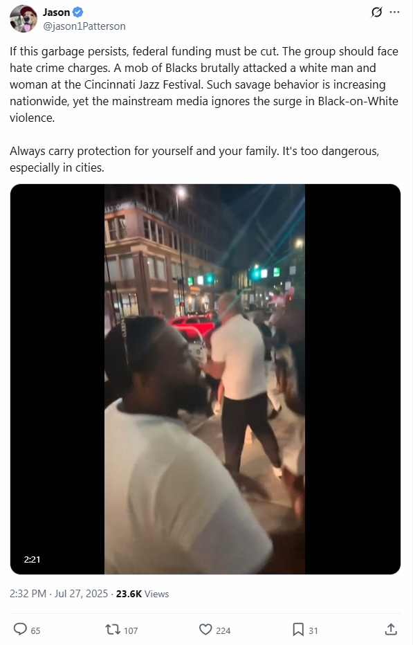 Footage from early Saturday morning shows a Black mob brutally beating a White man and woman in a downtown Cincinnati neighborhood. The video has since gone viral on X, prompting reactions from Elon Musk and Vice President J.D. Vance.