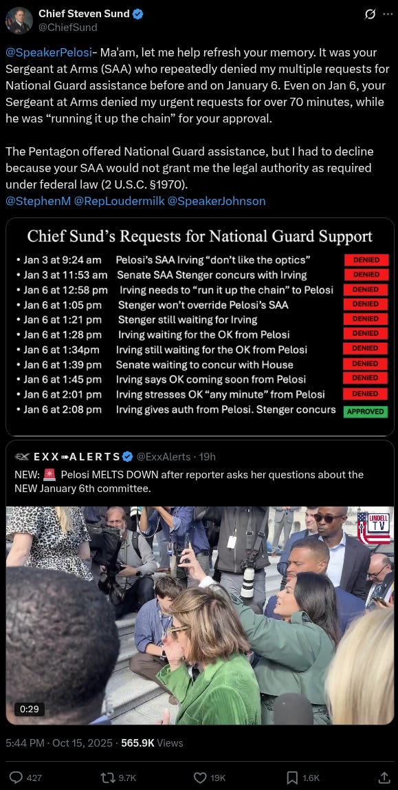 On Wednesday, after her latest denial to the press, Officer Steve Sund responded to Nancy Pelosi’s latest lies about January 6th and brought the receipts.