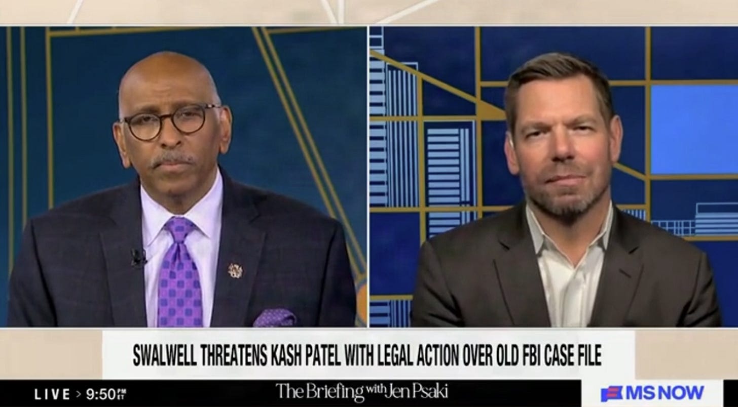 “But as my lawyer, one of our lawyers told me today, and this really kind of stops you right in your tracks, he said, ‘If they do this, it will be the greatest abuse of power by an FBI director since J. Edgar Hoover,’” Swalwell continued.