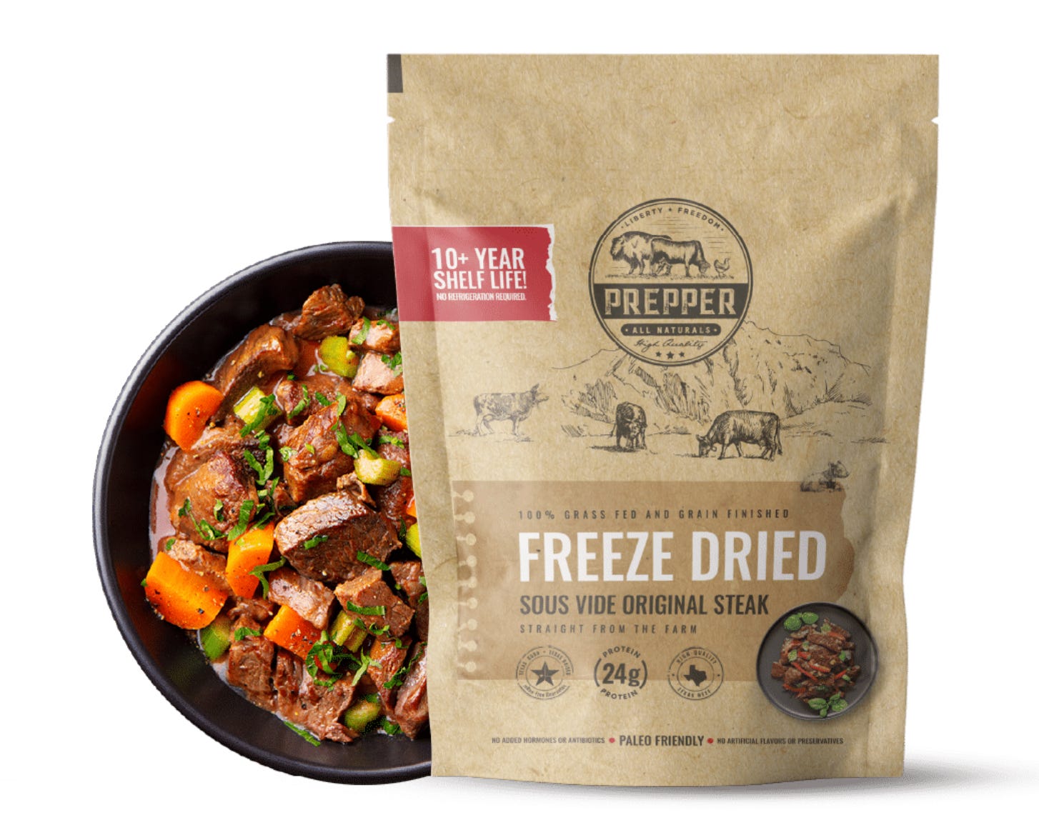 Each 12-ounce pack rehydrates to 48 ounces of ready-to-eat beef, giving you 12 full servings with 24 grams of protein each.