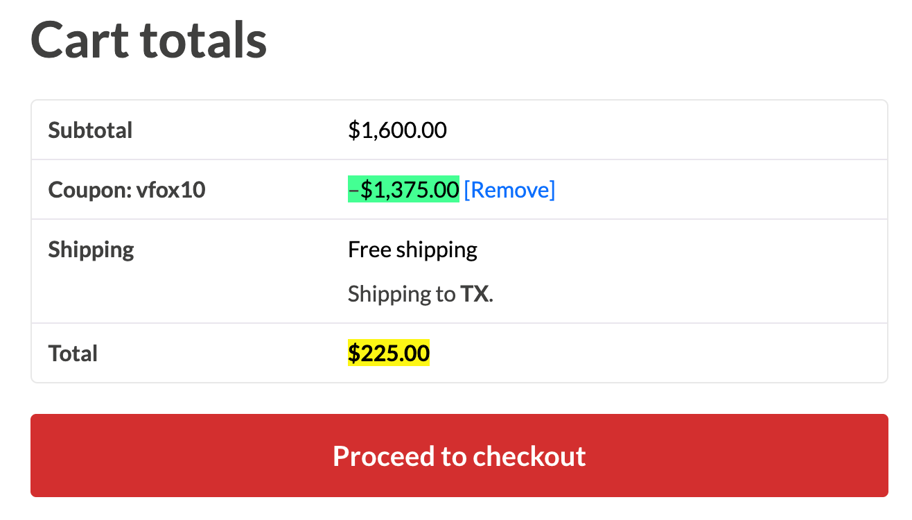 It’ll show $1360 on the website at first, but once you enter promo code VFOX10, the discounted price of $225 appears right in your cart.