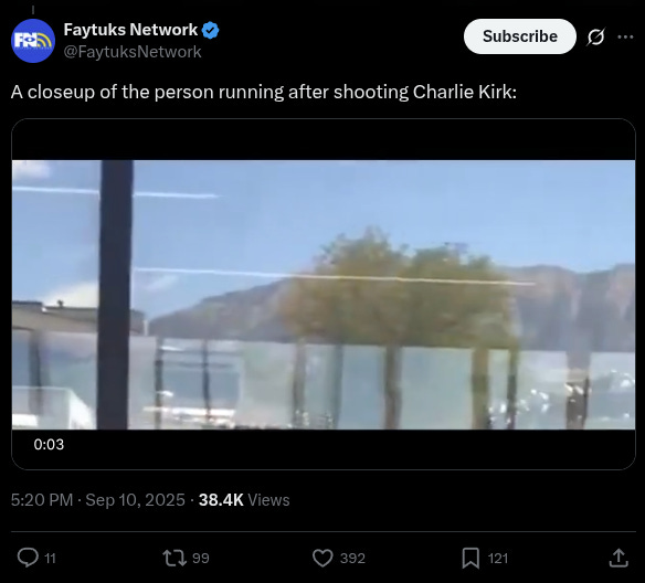 Another clip appears to corroborate this claim. Footage shows an individual sprinting across the rooftop of the Losee Center just moments after Kirk was gunned down.