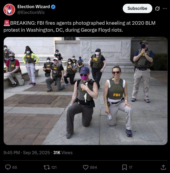 The FBI has fired a group of agents who were pictured kneeling at a George Floyd protest in 2020.