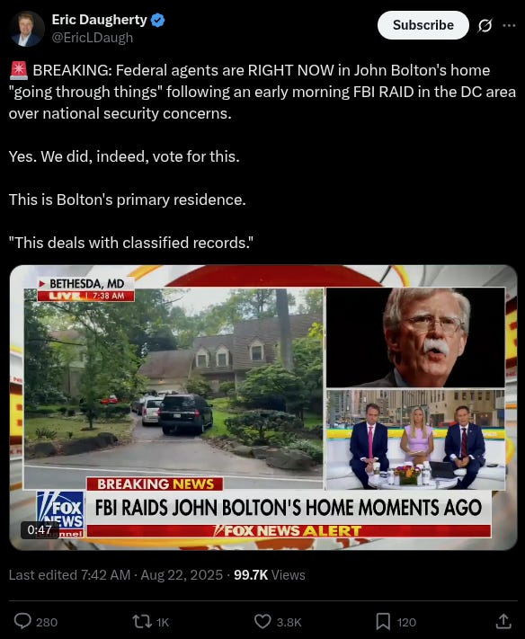 FBI Raids Home of John Bolton as Patel Says "NO ONE is Above the Law"