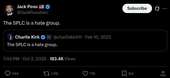 The SPLC added Turning Point USA to the âhate mapâ mere months before an assassin with a transgender boyfriend allegedly murdered Turning Point USA founder Charlie Kirk.