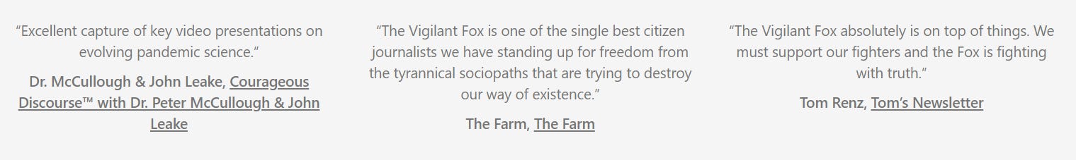“The Vigilant Fox is one of the single best citizen journalists we have standing up for freedom from the tyrannical sociopaths that are trying to destroy our way of existence.” —The Farm