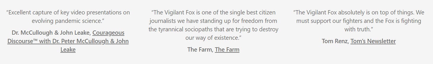 “The Vigilant Fox absolutely is on top of things. We must support our fighters and the Fox is fighting with truth.” —Tom’s Newsletter