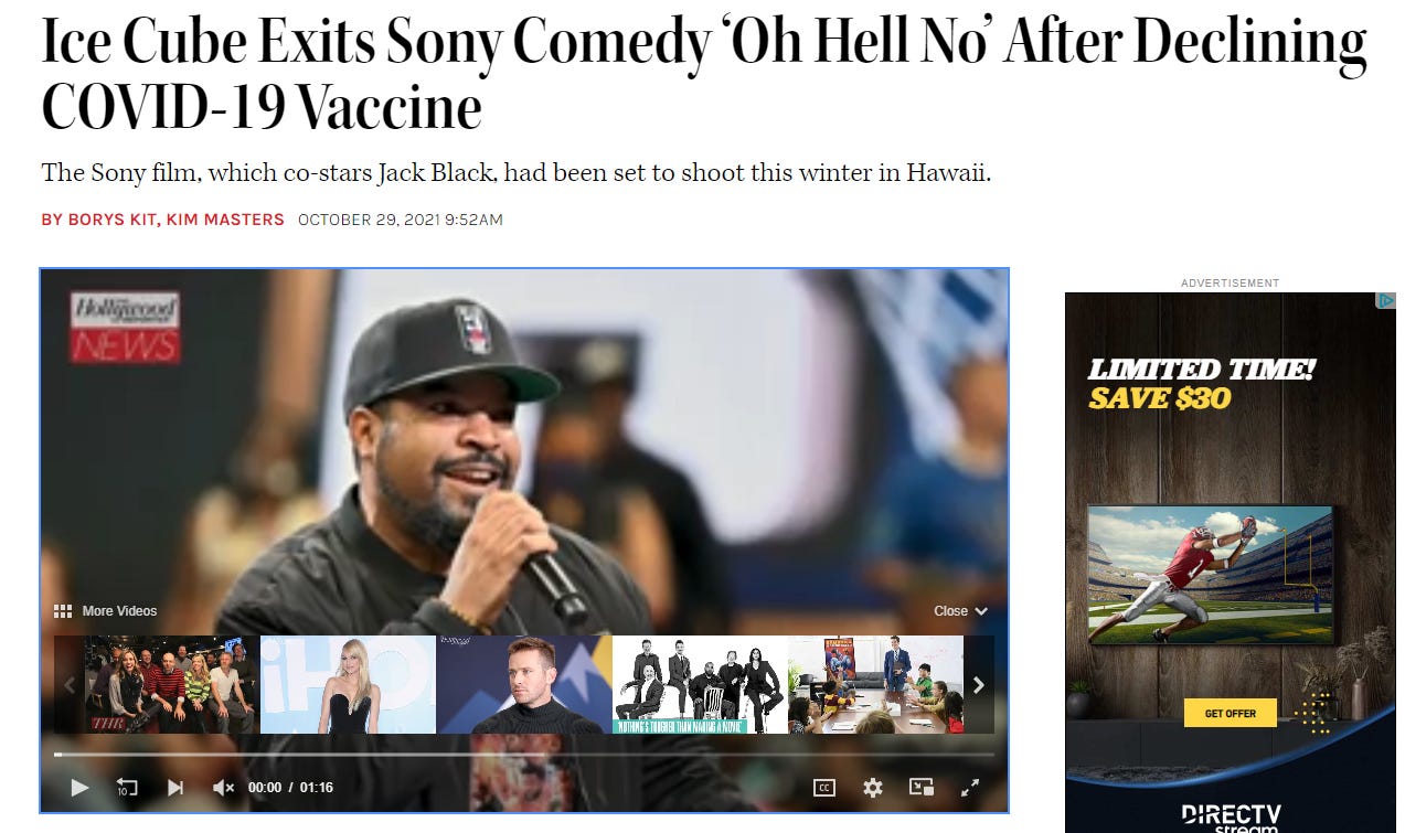 Last fall, at the height of Covid-19 fear and vaccine tyranny, you may remember this headline featuring famous hip-hop music artist and actor Ice Cube.