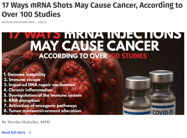 However, a recent literature review outlined over 100 peer-reviewed studies indicate that mRNA injections may cause or accelerate cancer via 17 distinct biological mechanisms: