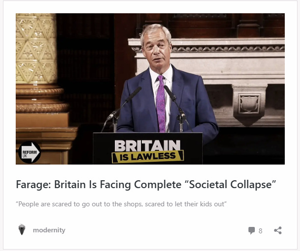 Reform UK leader Nigel Farage urged last week that owing to rampant crime and the unwillingness to deal with it, the country is on the verge of societal collapse.