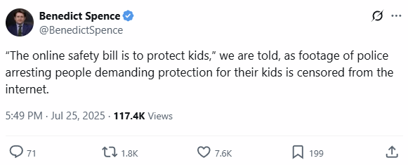 The Free Speech Union remarked “Our fears appear to have been vindicated on the very first day of the Online Safety Act’s enactment.”