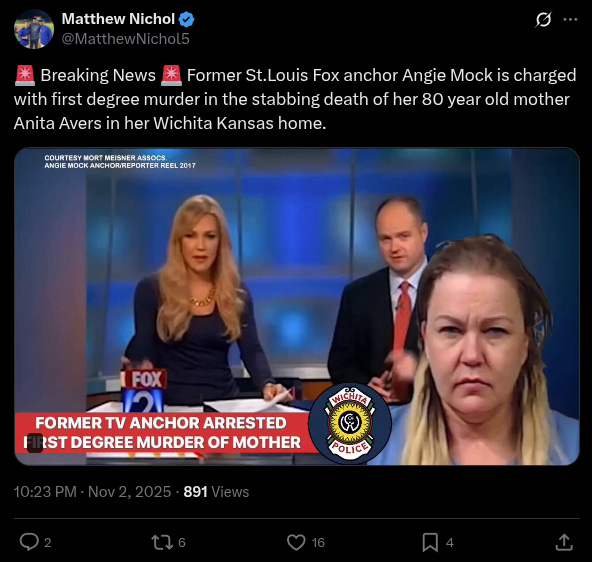 A former Fox television anchor has been accused of brutally stabbing her own mother to death on Halloween morning in Wichita, Kansas.