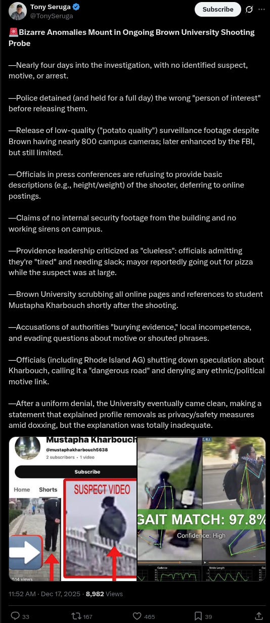 Brown University scrubbing all online pages and references to student Mustapha Kharbouch shortly after the shooting.