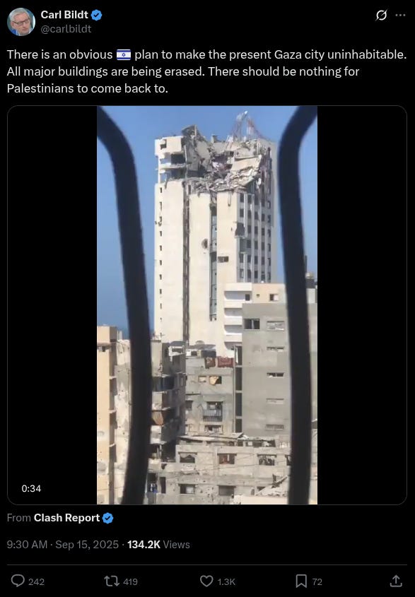 Interestingly, amid anti-Netanyahu protests in major cities and even near his personal residence, some Israeli reservists are revolting, intentionally failing to report for duty. Haaretz earlier this month reported that some 350 Israeli reservists signed a statement opposing the takeover of Gaza City and renewed military assault there.