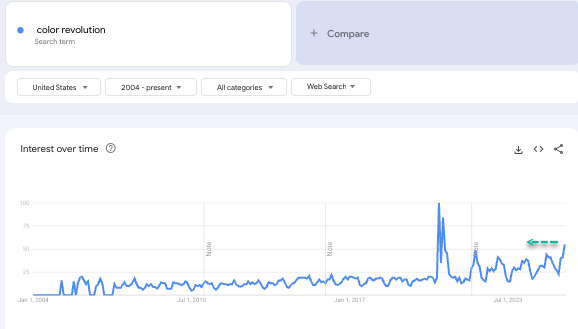 The search term “color revolution” has risen to the highest levels since the Marxist BLM riots in 2020.