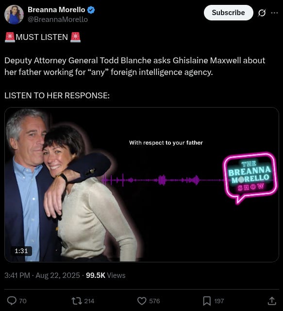 Ghislaine Maxwell Admits Her Father Was an Intelligence Asset